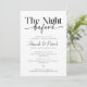 Elevar la anticipación para su noche especial con nuestra invitación a la cena de ensayo Minimalista "Simplicity Soiree". Esta invitación, diseñada con buen gusto, es el epítome de la elegancia subestimada, ofreciendo una estética limpia y sofisticada que captura sin esfuerzo la esencia de su celebración. Personalízalo con los detalles de su fiesta fácil y rápidamente, simplemente pulse el botón personalizar para reorganizar y formatear el estilo y la ubicación del texto. ¡Artículos coincidentes disponibles en la tienda!