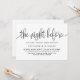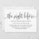 Celebremos a la novia y al novio ante el boda. Invite a la familia y a los amigos con esta elegante invitación a la cena. Presenta caligrafía caprichosa con tipografía clásica. Personalice agregando nombres, fecha, dirección y otros detalles. Este guión La invitación de la noche antes es perfecta para cualquier temporada y tema boda.