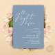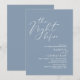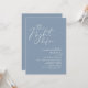 Anuncie su gusto por el estilo con nuestro moderno diseño estético estético de temática azul polvoriento (La noche antes) boda de la carta de invitación a la celebración. Es ideal para las parejas que han decidido celebrar la noche anterior a su gran día. Con un diseño sofisticado pero lúdico, esta invitación seguramente marcará el tono para un evento inolvidable. La tarjeta de invitación incluye un moderno diseño de escritura romántico, añadiendo un toque de elegancia eterna a tu celebración. Diseñado por TeeshaDerrick