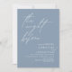 Anuncie su feliz cada momento con estilo con nuestra moderna tarjeta de invitación a la celebración del ensayo boda con el diseño del boda azul polvoriento (La noche antes). Es ideal para las parejas que han decidido celebrar la noche antes de su mejor día. Con un diseño sofisticado pero lúdico, esta invitación seguramente marcará el tono para un evento inolvidable. La tarjeta de invitación incluye un moderno diseño de escritura romántico, añadiendo un toque de elegancia eterna a tu celebración. Diseñado por TeeshaDerrick