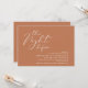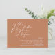 Anuncie su gusto después con estilo con nuestro moderno diseño estético de tema marrón de cobre (La noche antes) boda de la carta de invitación a la celebración. Es ideal para las parejas que han decidido celebrar la noche anterior a su gran día. Con un diseño sofisticado pero lúdico, esta invitación seguramente marcará el tono para un evento inolvidable. La tarjeta de invitación incluye un moderno diseño de escritura romántico, añadiendo un toque de elegancia eterna a tu celebración. Diseñado por TeeshaDerrick