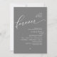 Anuncie su gusto después con estilo con nuestro moderno y romántico diseño gris oscuro (La noche antes de la eternidad) boda de la carta de invitación a la celebración. Es ideal para las parejas que han decidido celebrar la noche anterior a su gran día. Con un diseño sofisticado pero lúdico, esta invitación seguramente marcará el tono para un evento inolvidable. La tarjeta de invitación incluye un moderno diseño de escritura romántico, añadiendo un toque de elegancia eterna a tu celebración. Diseñado por TeeshaDerrick