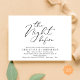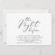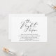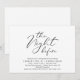Anuncie su gusto después con estilo con nuestra moderna tarjeta de invitación a la celebración de ensayo de boda en blanco y negro (La noche antes). Es ideal para las parejas que han decidido celebrar la noche anterior a su gran día. Con un diseño sofisticado pero lúdico, esta invitación seguramente marcará el tono para un evento inolvidable. La tarjeta de invitación incluye un moderno diseño de escritura romántico, añadiendo un toque de elegancia eterna a tu celebración. Diseñado por TeeshaDerrick