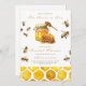 Celebra la futura novia con este dulce y alegre diseño de temática miel. Con una tinaja de miel a la acuarela, panecillos dorados y abejas vibrantes, esta invitación es perfecta para una ducha rústica en el jardín o un brunch en el patio trasero. El elegante guión y los detalles encantadores lo convierten en una elección digna de moda para las celebraciones de verano y primavera.