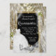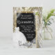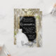 Hermosa invitación a la Quinceañera de perla negra y dorada con vestido blanco bonito, zapatos altos de tacón purpurina plateado y tiara diamantífera sobre un adorable fondo de perla dorada y diamante. Usted puede fácilmente personalizar esta elegante invitación de Quinceañera en negro y oro simplemente agregando los detalles del evento en el estilo de letra, color y redacción de su elección. También puede cambiar el color de fondo.