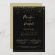 Esta práctica dorada hace un ensayo perfecto para la cena, la invitación es para una moderna celebración de ensayo boda. El diseño presenta un hermoso elemento purpurina dorado en un fondo negro para embellecer tu evento.