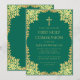 Invitación La primera comunión sobre el oro verde esmeralda d