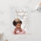 Invitación a la ducha de bebé de la princesa afroamericana con una hermosa bebé usando un tutu rosado de bonito y tiara de joyas en un elegante fondo de satén blanco. Esta invitación a la ducha de bebé de la princesa afroamericana es fácilmente personalizada con los detalles de tu evento.