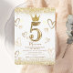 Estos hermosos niños invitan a la pequeña princesa a cumplir 5 años con la imitación de purpurina de oro ( FAUX GOLD ) y elegante escritura moderna. La plantilla de invitación de cumpleaños es especial para los niños, los cumpleaños son especiales, y esta invitación puede ayudarle a hacer una fiesta de cumpleaños memorable.