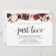 Esta rústica tarjeta de invitación con temática floral borgoña es perfecta para su boda/celebración fiesta. Añade tus detalles en letras o letras negras coincidentes. Teesha Derrick