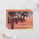 Esta invitación hermosa del boda de playa ofrece una palmera grande y una puesta del sol brillantemente coloreada con las luces de la secuencia del estilo de edison que brillan intensamente brillantemente. Perfeccione para un boda temático tropical o de la playa.