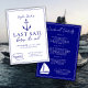 Celebra su "última vela antes del velo" con esta invitación de fin de semana de soltera de temática náutica, ilustrada en tonos oceánicos de azul y blanco crudo. Con encantadores detalles dibujados a mano, una gorra del capitán, un ancla y un barco clásico. Se evoca la blancura del mar con un toque de sofisticación. La parte delantera presenta la celebración del fin de semana con una elegancia brizante, mientras que la parte trasera revela un itinerario bellamente arreglado para guiar a su equipo en cada momento inolvidable.