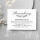 Elegante invitación al aniversario de la muerte en blanco y negro para celebrar y honrar la memoria de sus seres queridos. El recuerdo se escribe a través de la invitación en un elegante guión negro sobre medio cordón de vegetación dibujado a mano. Añada la redacción de la invitación, el nombre de sus seres queridos, y detalles de la celebración en elegantes fuentes negras contra un fondo blanco. La invitación incluye una corona verde y un diseño elegante. Invita a tus amigos y seres queridos a recordar a los seres queridos que has perdido en el aniversario de su fallecimiento con esta sombría pero elegante invitación a recordar en blanco con detalles negros.