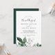 Esta invitación a una boda esmeralda es perfecta para un boda boho. El diseño es elegante y rústico, con unas hojas de acuarela verde oscuro y un eucalipto con un toque bohemio moderno.