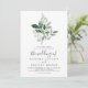 Esta invitación a una boda esmeralda es perfecta para un boda boho. El diseño es elegante y rústico, con unas hojas de acuarela verde oscuro y un eucalipto con un toque bohemio moderno.