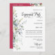 Esta invitación a la fiesta de compromiso presenta un estilo minimalista moderno y elegante, con formas de hojas de vegetación acuáticas y hermosas caligrafías y fuentes tipográficas limpias y serif en un fondo viva magenta. La sencillez de este diseño le da un toque de elegancia a su boda. Funciona bien con muchos temas bodas y sin duda una gran adición a su boda. Simplemente personalizar los nombres y la redacción en unos pocos pasos fáciles y personaliza la tarjeta de invitación con la foto de la pareja feliz y reemplaza el código QR con el tuyo en la parte posterior de la invitación para darle un agradable toque personal. Nota: La elegante y bella tipografía frases de "fiesta de compromiso" y "amablemente rsvp a" en la parte delantera de la invitación Y el "registro de regalos" en la parte posterior de la invitación junto con la vegetación acuarela hojas de eucalipto arreglos y otros elementos de arte gráfico como las líneas y cajas rectangulares no pueden editarse, cambiarse, moverse o eliminarse. Están arreglados. Si necesita cambiar el color, puede personalizar la tarjeta de invitación. Puede personalizar y personalizar la invitación para que se ajuste a sus necesidades de eventos de boda y simplemente haga clic en el personalizar de la invitación. Puede personalizar fácilmente la invitación con el texto como descarga digital y enviarla electrónicamente y compartirla con sus invitados a través de mensajes de texto, correo electrónico o medios sociales. También puede enviar o enviar la invitación a sus invitados. O se pueden obtener las dos cosas — invitación impresa y recibir la invitación en formato digital como descarga instantánea.