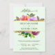 Sorprenda a sus invitados con esta elegante invitación de boda con un hermoso diseño floral y "Bismillah" en caligrafía árabe sobre un fondo verde claro. Simplemente agregue los detalles de su evento en esta plantilla fácil de usar para convertirla en una invitación única.