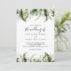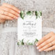 Este verde tropical dorado, el boda de la invitación, es perfecto para una boda de destino. El diseño se compone de acuarelas pintadas a mano de oro y palmeras verdes y hojas de plátano con flores rosas cuidadosamente dispuestas en bonitos ramos.