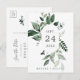 Esta vegetación esmeralda ahorra la postal de fecha es perfecta para un boda boho. El diseño es elegante y rústico, con unas hojas de acuarela verde oscuro y un eucalipto con un toque bohemio moderno.