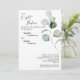 Esta moderna y verde noche blanca antes del diseño de la invitación a los ensayos presenta una mezcla sencilla y combina estilos coordinados en blanco y negro con delicados elementos verdes que añaden un flúor elegante alrededor de una simple y sofisticada tipografía y un precioso guión de caligrafía mínima. El eucalipto de acuarela y otras hojas botánicas son muy hermosos en todo, con el desvanecimiento de esmeraldas oscuras en un efecto sombrío al verde claro de la menta - para añadir un toque de elegancia de naturaleza rústica a un telón de fondo contemporáneo neutral. Esta magnífica colección crearía perfectamente un aire de elegancia pulida para tu boda de sueños formal o casual u otro evento especial. Como con todos nuestros diseños, si tiene alguna pregunta o petición especial, por favor contacte con nosotros.