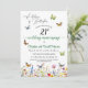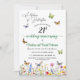 Una elegante invitación al boda de vegetación con flores silvestres y mariposas coloridas que se pueden personalizar añadiendo sus detalles.