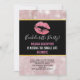 Fiesta de despedida de soltera con un fondo compuesto de hojas tropicales de oro rosa. Superpuesto en la parte superior hay un marco negro con un borde de brillo falso dorado, dentro hay labios brillantes rosados.