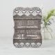 Invitación Lace blanco sobre la madera marrón rústica dulce 1