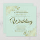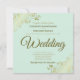 Esta sencilla invitación a la boda tiene un fondo de color verde pálido o neonatino, con rizos de oro de imitación de Relieve metalizado y remolinos en las esquinas. La redacción es formal con elegantes letras de oro de escritura.