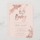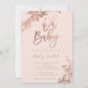 Una moderna, original y sencilla flauta rosa de hojas florales de oro Oh tipografía bebé invitación a la ducha con un fondo de color rosa completamente personalizable