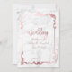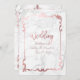 Invitaciones a bodas de PixDezines, con lámpara de araña de oro Rosa en losa de mármol blanco acentuada con marco barroco y corazón.Nuestro diseño dinámico le permite editar todos los elementos.