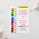 Esta divertida invitación de cumpleaños infantil presenta una columna de lápices de acuarela arcoíris. Todos los detalles de la fiesta están en la parte frontal con color de fuente rosa para la fiesta y la información del nombre. Rellene los campos de texto del modelo en personalizar, elimine cualquier información o haga clic en personalizar para seleccionar un estilo de letra, tamaño y color que prefiera.