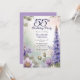 Elegant larkspur and water lilies floral design "55th Birthday Party" design featuring a floral frame of purple larkspur and water lilies on a pastel-toned watercolor background.
