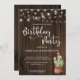 Rustic String Lights Succulent Any Year Birthday Party Invitation con hilos festivos de luces y una bolsa adorable de suculentos y cactus sobre un fondo rústico de madera. Añade fácilmente tus detalles para una invitación divertida y personalizado. El texto es editable para cualquier año: 21, 30, 50, 90 - ¡enloquecerse! ¡Ideal para eventos de cualquier género o edad!