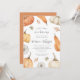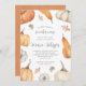 Las encantadoras invitaciones a la ducha de bebé caen con un borde de calabazas acuáticas mudas y hojas de otoño, con los detalles de la ducha de bebé con letras grises. "Hay una calabaza en camino" aparece arriba. Perfecto para las duchas infantiles de otoño o de Halloween.