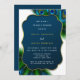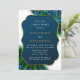 Te encantarán estas plumas de pavo real azules y verdes con un marco dorado. Las invitaciones coincidentes están disponibles.