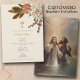 Un hermoso diseño bautista con acuarela de flores Boho, cruz de oro y un ícono cristiano del bautismo de Jesucristo en el reverso de la tarjeta. Un diseño religioso ideal para el bautismo de una niña o un niño. En esta colección de diseño se pueden ver la papelería y la decoración coincidentes.