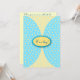 Estas invitaciones a la ducha de bebé son perfectas para dar la bienvenida a un niño en el mundo. Las invitaciones a la ducha para bebés son de color amarillo pálido con rayas azules claras en el fondo. El primer plano tiene medio círculo azul claro impreso para parecerse a aletas con puntos de polka amarillo pálido. El centro de la parte delantera tiene ovalado amarillo y azul con espacio para texto. El reverso de estas invitaciones a la ducha de bebé son de color amarillo pálido y de color azul medio. Texto Personalizar para satisfacer sus necesidades.