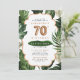 Invitación moderna de 70 años con un follaje tropical de color agua verde con falsos acentos de Relieve metalizado de cobre. Perfecto para una fiesta de cumpleaños tropical, de playa o de jardín. Elementos coincidentes y otras edades disponibles.