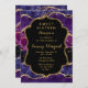 Esta elegante y glamorosa y dulce invitación a los dieciséis años cuenta con un oscuro fondo de mármol agate violeta con falsos toques purpurinas de oro. El texto combina el guión manuscrito y las fuentes sans serif modernas para un aspecto elegante y sofisticado. Las secuencias y la textura angustiada crean la mezcla perfecta de moda y de grunge.