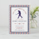 Celebrate the groom's final inning as a single man with this "Last Swing Before the Ring" baseball-themed bachelor party invitation. Featuring a classic navy blue silhouette of a batter against a rustic white wood-grain background, this design is framed by a sporty red and navy chevron stitch border—reminiscent of the seams on a baseball. Perfect for a night out at the ballpark or a sports bar celebration, this template is fully customizable. Easily update the name, the date, time, and location to fit your specific event.