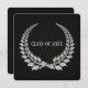 Símbolo de laurel plateado con diploma para una fiesta de graduación con fondo texturado de cuero negro. El texto se puede editar para cualquier año escolar.