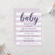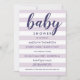 Las invitaciones a la ducha para bebés de moda cuentan con franjas horizontales limpias de lavanda violeta / violeta y blanca con un texto violeta oscuro que contrasta con el que se puede personalizar para tu evento. Los colores se pueden personalizar.