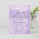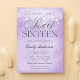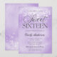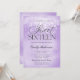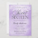 Esta moderna invitación de dulce 16 de lavanda morado cuenta con un fondo de luces de brillo de moda y una fuente de letra elegante. Una invitación glamurosa que puedes editar tú mismo utilizando las herramientas de plantilla en línea.