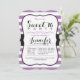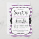 Elegante, formal Lavender rayas moradas y blancas, patrón rayado chica adolescente dulce 16, dieciséis, invitación de fiesta de cumpleaños con fuentes negras. Ideal para todo el año, elegante invitación para la primavera, verano, otoño o invierno dulce 16, 16 cumpleaños. La forma de la chaqueta invita a un elegante estilo vintage.