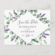 Esta lavanda rústica salva la postal de fecha perfecta para un boda al aire libre sencillo y elegante. El diseño floral incluye hojas de eucaliptos acuáticas y vegetación con brotes de flores silvestres moradas.