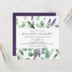 Esta rústica invitación a la boda cuadrada de lavanda y eucalipto es perfecta para un boda al aire libre sencillo y elegante. El diseño floral incluye hojas de eucaliptos acuáticas y vegetación con brotes de flores silvestres moradas.