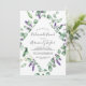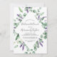 Esta rústica invitación al brunch de lavanda y eucalipto para novias es perfecta para una simple y elegante ducha de boda al aire libre. El diseño floral incluye hojas de eucaliptos acuáticas y vegetación con brotes de flores silvestres moradas.