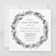 ¡Celebra que sea la mamá! Esta divertida invitación a bañarse en una ducha de bebé de lavanda cuenta con una corona floral de color agua llena de ramas de lavanda y vegetación. Personalice su información o haga clic en "Haga clic en el personalizar más adelante" para editar estilos de fuente, tamaño y colores.