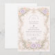An opulent floral frame inspired by classic European romance. Soft lavender and blush roses bloom within sculpted ivory and champagne scrollwork, forming a graceful baroque silhouette around the center panel. Muted greenery and delicate cream blossoms add depth while keeping the palette light and refined. The overall composition feels timeless, elegant, and heirloom-worthy — perfect for a romantic celebration with a regal garden aesthetic.