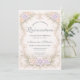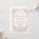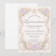 An elegant baroque design framed with sculpted champagne scrollwork and blooming lavender and blush roses. Soft ivory florals and muted greenery create a graceful, symmetrical border that feels refined and timeless. The delicate pastel palette paired with classic typography gives the composition a regal yet romantic presence. Perfect for a quinceañera celebration that embraces tradition, femininity, and sophisticated European-inspired beauty.